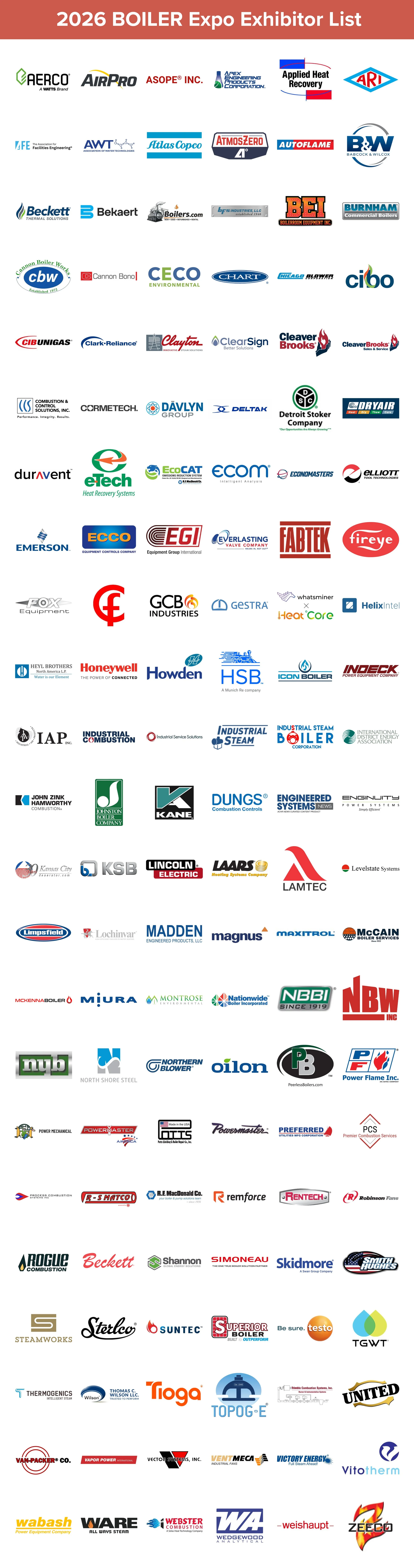 Check out this list below of over 135+ industry heavyweights that you’ll have access to at the ABMA 2026 BOILER Expo!